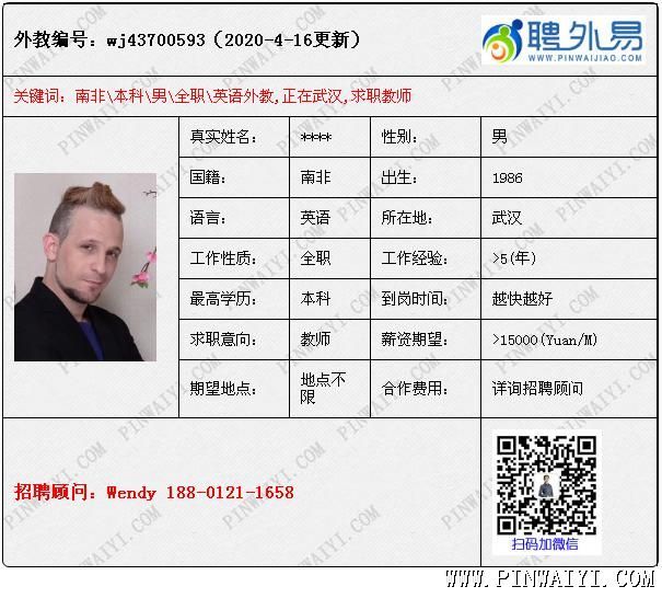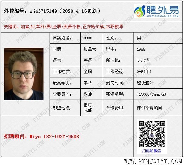 外教招聘快訊:每日外教推薦2020年4月17日 加拿大外教,現(xiàn)在家屬簽,工簽資料準(zhǔn)備中 美國(guó)外教,工簽自理,現(xiàn)在深圳,不需要提供住宿。盡快上崗。 美國(guó)外教,碩士,戲劇表演專(zhuān)業(yè) ,tefl,經(jīng)驗(yàn)豐富,薪資商議 英國(guó)外教,有本科,有tefl ,在云南的一個(gè)國(guó)際學(xué)校工作 加拿大外教,工簽轉(zhuǎn)聘 南非外教,本科,教育相關(guān)專(zhuān)業(yè),有教學(xué)經(jīng)驗(yàn) 南非外教,本科,tefl,自理配偶簽(11月26到期),中國(guó)老婆和孩子,求職地點(diǎn)可協(xié)商,目前在武漢,可盡快到崗,10多年教學(xué)經(jīng)驗(yàn),在武漢以雅思監(jiān)考官出名 |