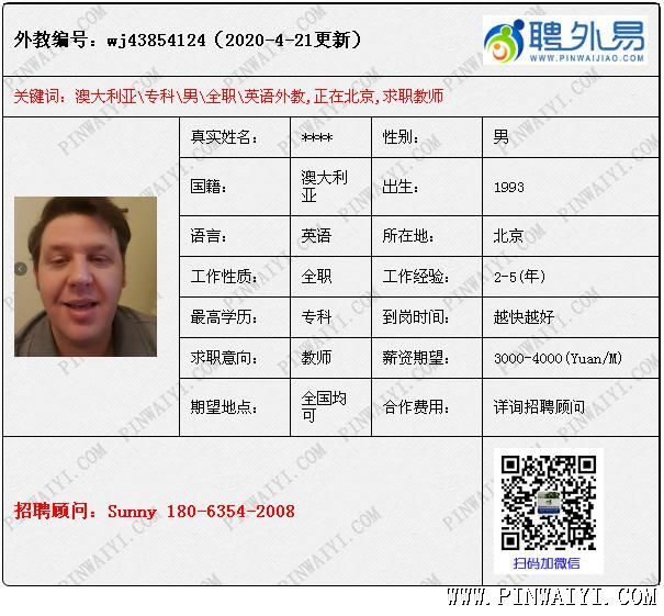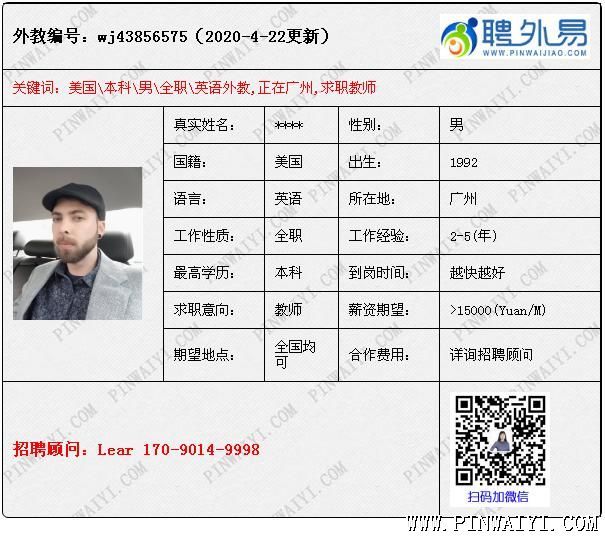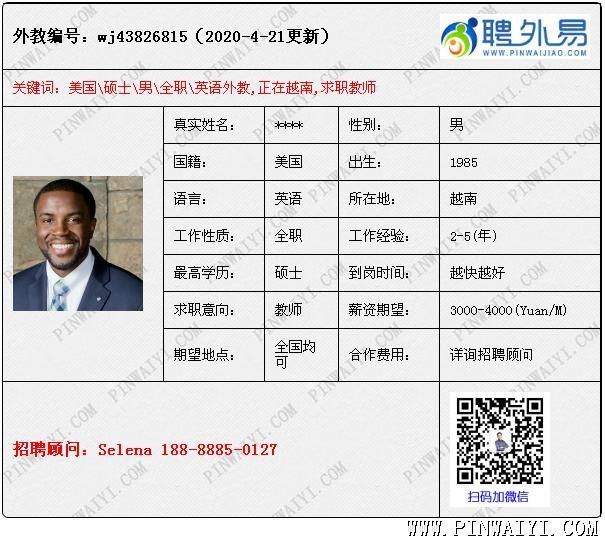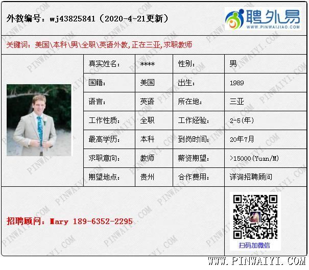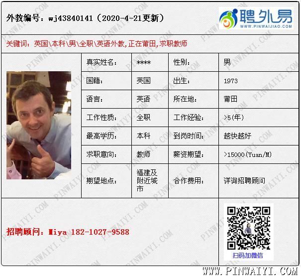 外教招聘快訊:每日外教推薦2020年4月22日 美國(guó)外教,工簽轉(zhuǎn)聘,求職下學(xué)期鄭州職位。 美國(guó)外教,文學(xué)學(xué)士學(xué)位 -丹佛大都會(huì)州立大學(xué),有TEFL 澳大利亞外教, 教學(xué)經(jīng)驗(yàn)豐富,求職不限制 南非外教,本科教育專業(yè),有tefl和教學(xué)經(jīng)驗(yàn) 英國(guó)外教,工簽轉(zhuǎn)聘,求職公立學(xué)校職位 美國(guó)外教,現(xiàn)在三亞,不去培訓(xùn)學(xué)校,下學(xué)期到崗 美國(guó)外教,碩士,有教學(xué)經(jīng)驗(yàn), 求職不限制,薪資協(xié)商 |