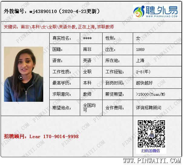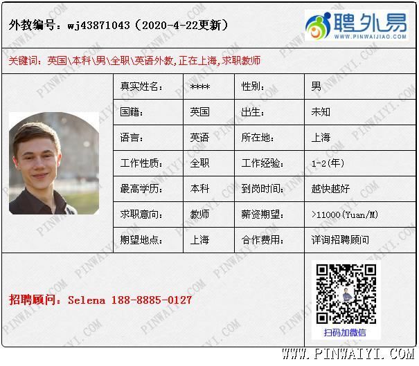 外教中介機構(gòu)供稿: 寶藏級別的母語外教 最近偶遇兩個優(yōu)秀的寶藏級別的母語外教。我給你們說說這2個寶藏級別的外教。 美國男:前100強的大學(xué)--林肯大學(xué)畢業(yè),林肯大學(xué),大家都知道那是著名學(xué)府,被譽為英國最現(xiàn)代化和最吸引人的大學(xué),在英國,排名前10,就相當(dāng)于中國的清華和北大吧。這個外教教育背景如此強大,工作經(jīng)歷也很多,都與教學(xué)有關(guān)。在大學(xué)任教教過數(shù)學(xué),在培訓(xùn)班教過小孩子,在公立教過AP課程,而且最重要的是,他還有音樂教學(xué)背景,會高級貝斯,原生吉他,電吉他等,非常的優(yōu)秀。 南非外教,本科,有教學(xué)經(jīng)驗 第二個外教是一個英國人,人很友好,謙虛謹慎,發(fā)音醇厚,就像是我們高中聽力考試聽到的發(fā)音一樣,字正腔圓,讓人聽到很享受,愉悅我們的耳朵,對于喜歡英語的人來說,余音繞梁,三日不絕于耳,應(yīng)該就是他這種發(fā)音。他之前的職位是一個教學(xué)主管,一般的培訓(xùn)教師都由他來做。最重要的是他的薪資并不高,之前的每一份工作都是工作了2年以上,非??孔V。而且現(xiàn)在就在國內(nèi),等待轉(zhuǎn)聘,要知道疫情期間,在國內(nèi)轉(zhuǎn)聘的外教都是搶手貨。 就這個兩個外教聯(lián)系到我,讓我欣喜萬分,問清楚簽證,所在城市,薪資狀況,求職意向城市,住宿要求,以及求職學(xué)校類型,待外教發(fā)來護照,簡歷和視頻,查驗過真?zhèn)?,就發(fā)給客服組同事匹配到我們認為很合適的學(xué)校。然后就等著面試機會,可是左等右等,學(xué)校就是不回復(fù),我們認為非常合適的匹配,學(xué)校怎么不回復(fù)面試呢?細問之下,原來是膚色的問題,這兩個外教屬于有點膚色的母語外教,是那種很健康的小麥色。學(xué)校堅持要歐美國家沒有膚色的外教。就算是其他都很優(yōu)秀的也不能放棄膚色這個底線。我們對于學(xué)校的這個招聘要求,很無語。外教是來中國教學(xué),作為資深的外教專員,我認為,語音純正,有經(jīng)驗,遠勝過膚色這個可有可無的條件對學(xué)生的幫助要大的多。我們考慮招聘外教的條件可不可以把重點放在能真正幫助我們的學(xué)生, 能提高學(xué)生的口語,能有這樣純粹的語言環(huán)境,至于膚色也沒有那么重要吧! 英國外教,現(xiàn)在上海,本科學(xué)歷 就學(xué)校的這種反饋,我們立馬給外教安排了其他的學(xué)校,有的學(xué)??紤]膚色,有的學(xué)校說只要口音好,會教學(xué),符合工作簽證,我們都考慮;很多學(xué)校并不在乎膚色,在乎的是能不能真正提高我們孩子的英語。接著我們就給其中一家學(xué)校安排面試了這個外教,面試后,學(xué)校反饋很棒,在我們聘外易外教平臺的幫助下,發(fā)照片,看住宿,談薪資,簽合同,辦理轉(zhuǎn)聘簽證,按部就班,就差辦好工簽外教到校了。 目前第二個外教也在面試中,期待他也可以簽到合適的學(xué)校!聘外易,優(yōu)質(zhì)外教持續(xù)推送中! 外教中介機構(gòu)供稿活動仍然有效:http://z938.cn/about/n/p1403.html