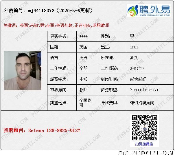 外教招聘快訊:每日外教推薦2020年4月28日 南非外教,現(xiàn)在南非,有TEFL,本科學歷,可以辦工簽 英國外教,肯特大學本科-英語文學史,在哈爾濱, 工簽轉(zhuǎn)聘, 求職公立初高中,下學期職位, 經(jīng)驗豐富。 加拿大外教,本科畢業(yè)于肯高迪亞大學阿爾伯塔學院,英語教育專業(yè),教過小學,中學英語及電影及戲劇等學科 美國外教,文教類工簽轉(zhuǎn)聘,現(xiàn)在大學任職,求職下學期高中或者大學職位,城市不限。 美國外教,現(xiàn)在上海,求職上海的職位 美國外教,現(xiàn)在青島,求職青島,教學經(jīng)驗豐富,隨時到崗 英國外教,現(xiàn)在汕頭,本科學歷,可以教游泳,教學經(jīng)驗豐富 |