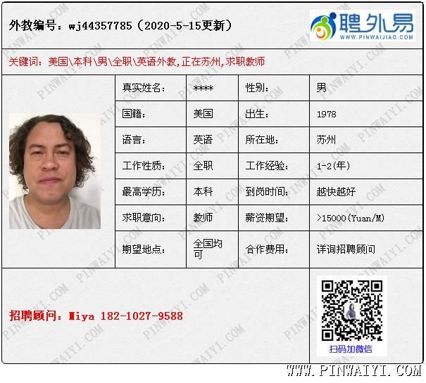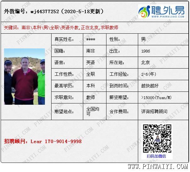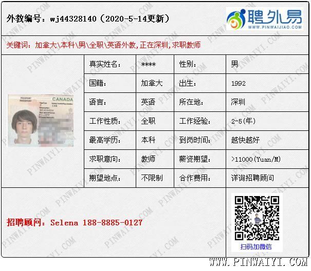 外教招聘快訊:每日外教推薦2020年5月18日 加拿大外教,現(xiàn)在深圳,本科,多年教學(xué)經(jīng)驗(yàn),盡快開始工簽 美國(guó)外教,工簽轉(zhuǎn)聘,求職高中,大學(xué)職位。 南非外教,教育學(xué)士,教學(xué)經(jīng)驗(yàn)豐富,現(xiàn)在北京,可以教高爾夫 新西蘭外教,本科學(xué)歷,教過(guò)初中,高中和大學(xué),求職公立學(xué)校 美國(guó)外教,現(xiàn)在蘇州,盡快到崗 加拿大外教,現(xiàn)在蘇州,文學(xué)專業(yè),求職公立學(xué)校 英國(guó)外教,有TEFL,疫情后來(lái)中國(guó) |