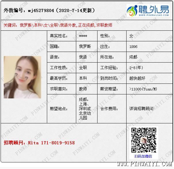 要求過高的外教,很難找到適合自己的職位 因?yàn)橐咔樵驅(qū)е逻吘巢荒苷i_放的前提下,國外新的外教資源無法進(jìn)來,現(xiàn)有的在國內(nèi)的外教資源就顯得異常稀缺和緊張了。各招聘單位目前也基本上都意識到了這一點(diǎn),所以很多單位今年招聘外教的時(shí)候,制定的薪資標(biāo)準(zhǔn)比以往也都高了不少,還有很多單位說,只要是外教能考慮我們學(xué)校,外教條件符合我們的要求,薪資都可以最大限度地讓他們滿意,給他們提供好的住宿環(huán)境。很多招聘單位為了找到合適的外教,也已經(jīng)在做最大程度的讓步,但是仍然會有一些高要求的外教不滿足于現(xiàn)狀。 英國外教,現(xiàn)在廣州,本科學(xué)歷,求職全國。 最近在給河北的一所國際學(xué)校推薦外教,這所學(xué)校之前的外教都我們推薦的,一直合作的都挺好,所以今年學(xué)校繼續(xù)選擇與我們聘外易平臺合作,他們是省市教育行政主管部門批準(zhǔn)的集幼兒園、小學(xué)、初中、高中、國際部為一體的一所國際學(xué)校,在校生有5000多人,師資力量非常強(qiáng)大,也一直在聘用外籍教師。今年學(xué)校招聘的外籍教師數(shù)量也很多,平臺一直在陸續(xù)推薦合適的外教到崗,其中遇到一個(gè)美國外教,這個(gè)外教在中國教學(xué)經(jīng)驗(yàn)相對來說是比較豐富的,公立,私立和其他國際學(xué)校也都教過,所以給到學(xué)校這個(gè)候選人的時(shí)候,學(xué)??戳送饨痰囊曨l跟簡歷后覺得很不錯(cuò),面試完雙方都覺得不錯(cuò),學(xué)校也給外教發(fā)offer了,發(fā)完offer后,外教開始提出了一些問題,因?yàn)樗?個(gè)女兒目前在國際學(xué)校上初中,所以他想到時(shí)候可以把孩子帶到他工作的國際學(xué)校來上學(xué),學(xué)校覺得這個(gè)是沒有問題的,而且還給他申請了減免孩子的一部分學(xué)費(fèi),但是外教不接受,想要全部減免,后來學(xué)校因?yàn)楸容^喜歡這個(gè)外教,就跟領(lǐng)導(dǎo)匯報(bào)爭取,最終也給他爭取到了,全部減免兩個(gè)女兒的學(xué)費(fèi),而且給外教提供的薪資說實(shí)話也不低了,就是想在每年夏令營的時(shí)候看看外教能不能免費(fèi)幫忙帶幾天,他也可以讓自己的兩個(gè)女兒跟著一起參加夏令營,免費(fèi)的。其實(shí)這種感覺也是人之常情,但是外教覺得不行,我不能接受免費(fèi)帶,后來校方這邊就說不帶也沒關(guān)系,等到來年夏令營的時(shí)候再具體看情況安排吧,就直接給外教按照之前談好的發(fā)合同了,但是外教又開始說不好意思,我還是不能接受,再問到底是什么原因,他也說不上來,也不知道到底怎么想的,校區(qū)為了爭取他,已經(jīng)展現(xiàn)了絕對的誠意,但是最終外教還是沒有選擇這個(gè)職位,看來他的要求是真的蠻高的,也不知道到底什么樣的學(xué)校才能適合他。 俄羅斯外教,本科,自理商務(wù)簽先到崗,工簽資料準(zhǔn)備中,求職成都,上海、深圳或北京幼兒園,辦理工簽,目前在成都,盡快到崗,形象好,發(fā)音不錯(cuò)。 這只是其中個(gè)別的高要求外教,最近在推薦的過程中,還遇到過不少其他外教對薪資要求非常高,有的非母語的外教直接要25000的薪資,再另外加住宿,各種獎金之類的,這種高得太多了的外教,我們直接拒絕推薦Offer。說實(shí)話,雖然目前外教行情資源確實(shí)非常緊張,適當(dāng)?shù)靥岣咭恍┻€可以,太高的話會很難找到適合自己的那份職位! |