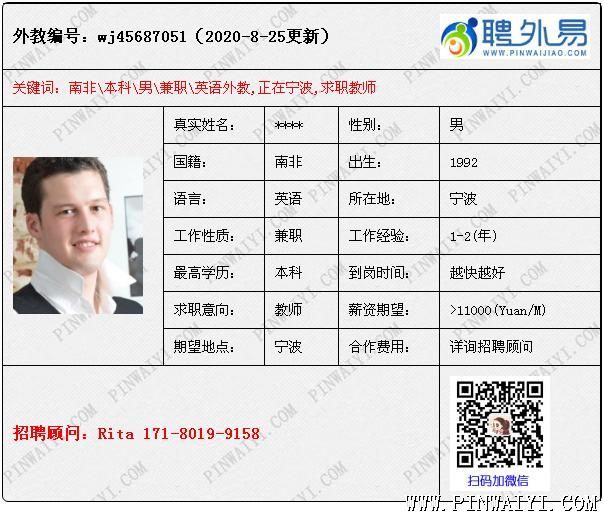 外教中介機(jī)構(gòu)供稿: 如何劃分好外教與不好的外教? 因為今年疫情的特殊情況,國外的很多外籍人員很難來華,所以不論是今年需要招聘外籍人才的單位還是外籍人才供應(yīng)商,都相對遇到了一定的困難,比如外教沒有以往的多,招聘外教困難,外教中介手里的資源也沒有以往多,又或者是目前外教薪資比以往高了不少,很多小一點的招聘機(jī)構(gòu)單位就出現(xiàn)了難以承擔(dān)外教薪資以及其他待遇的情況,又或者是外教職位很多,外教中介跟外教間間續(xù)續(xù)地跟進(jìn)了好幾個月,外教最終也沒有選擇原本想定的職位等等。最近通過看各個外教中介機(jī)構(gòu)溝通反饋的情況來看,大家都覺得今年比以往難做了不少,但是困難只是暫時性的,大家還是都得繼續(xù)努力,爭取往好的方向發(fā)展。 美國外教,碩士,自理家庭簽(2022),求職大連,目前在大連,立馬到崗。 今年不論招聘單位還是外教人才供應(yīng)商相互溝通的最多的話題就是,盡快推薦一個好點的外教過來。其實關(guān)于外教的好與不好,肯定也沒有太統(tǒng)一的標(biāo)準(zhǔn),畢竟每個人的情況不是完全相同,而且每個招聘單位的衡量標(biāo)準(zhǔn)也不一樣。 第一,外教好與不好,不應(yīng)以母語國家或者非母語國家來劃分。在大部分招聘單位的印象中,都覺得母語外教是比較好的,潛意思里覺得他們是從小就說英語的國家,成長的氛圍和思維方式都在那種情況下,對教授英語為第二語言的其他國家的孩子來說會更好些。其實這樣的想法也是沒什么問題的。但是不能否認(rèn)的就是,除了一些母語國家的外教發(fā)音標(biāo)準(zhǔn),教學(xué)好之外,非母語國家的很多其他外教也很不錯的,比如他們的發(fā)音也有很好的,教學(xué)經(jīng)驗也有很豐富的,也有很多非母語國家的外教非常喜歡跟小孩子相處,而且有自己的獨特的授課方式,非常受學(xué)生們的喜歡以及家長的認(rèn)同,這種也不失為好的外教。 第二,外教好與不好,不應(yīng)以膚色來劃分。所謂的白人,棕色,黑人都是以大家最主觀的印象反應(yīng)出來的,在大家印象中白人肯定各方面看起來更好,這種在主觀感知上是這樣認(rèn)為的,但是你能說有膚色的外教都是不好的嗎,這肯定不是的,就前段時間給江蘇的一家機(jī)構(gòu)推薦了一個有膚色外教,形象發(fā)音各方面都不錯,也有教學(xué)經(jīng)驗,而且薪資也要的不高,屬于正常范圍,到了學(xué)校之后,跟孩子也相處的很好,老師也都很喜歡她,這樣的人選也是一種好外教的人選。 南非外教,現(xiàn)在寧波,本科,有TEFL,求職寧波的職位。 第三,外教好與不好,不應(yīng)以薪資高低來劃分。有很多招聘單位認(rèn)為,要薪資高的就是好的外教,他們想,否則外教不優(yōu)秀,怎么會要這么高的薪資,就前段時間遇見一個這樣的情況,一所廣東的教育機(jī)構(gòu),這個機(jī)構(gòu)對外教的發(fā)音要求比較高,所以薪資待遇給的也不低。記得那天給他們推送了一個外教,把外教的資料以及薪資期望給學(xué)校說了之后,學(xué)校都覺得不可信,覺得這樣的外教薪資要這么低會不會不是真的?后來再三跟外教確認(rèn)溝通,確實是這樣,這個外教發(fā)音各方面都挺好,外教認(rèn)為這個特殊時期,薪資高低不是我選擇工作的最主要的衡量標(biāo)準(zhǔn),只要是我跟校區(qū)這邊談得好,薪資即使低一些也是可以的。像這樣的外教最起碼在人品方面就勝過了不少其他趁著疫情期間坐地起價的那部分外教。 所以外教好與不好,真的不是一個標(biāo)準(zhǔn)來衡量的,每個人都有自己不同的閃光點,所以只要綜合看起來外教是負(fù)責(zé)的,認(rèn)真的,跟孩子相處好,跟公司的同事相處融洽,這樣的就不失為好的外教人選。 外教中介機(jī)構(gòu)供稿活動仍然有效:http://z938.cn/about/n/p1403.html |