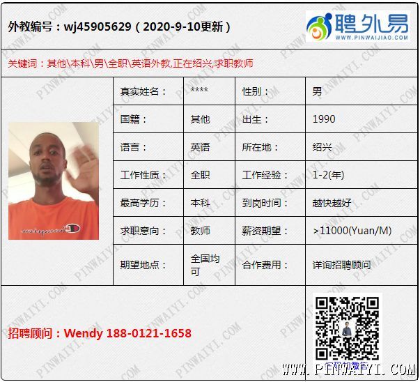 英語外教,1-2年工作經(jīng)驗,正在紹興 對于有些外教來說, 這些都不是很難的問題, 但是對于有些不修邊幅的男外教來說,注意自身的形象顯的尤為重要,尤其是有些有留胡子習(xí)慣的男外教,有的學(xué)校真的是很不喜歡外教留胡子,有的學(xué)校會說有大胡子的外教,學(xué)校的小朋友都會很害怕,真的,這些小朋友看到這些大胡子的外教都會很害怕,進而影響他們的上課質(zhì)量。 還有一點我必須要說明的 ,有的很多來自非洲外教,他們有時候不是很自信,確實是,他們有時候的英語并沒有想象中的好,但是對于他們來說,即使是沒有很好的英語水平,但是必須要有自信,自信是比任何事都重要的,就算是沒有很好的英語水平,但是我有一個自信心,并且有自己對于教學(xué)的熱情,這都不是事 ,依然可以找到一個很好的工作。