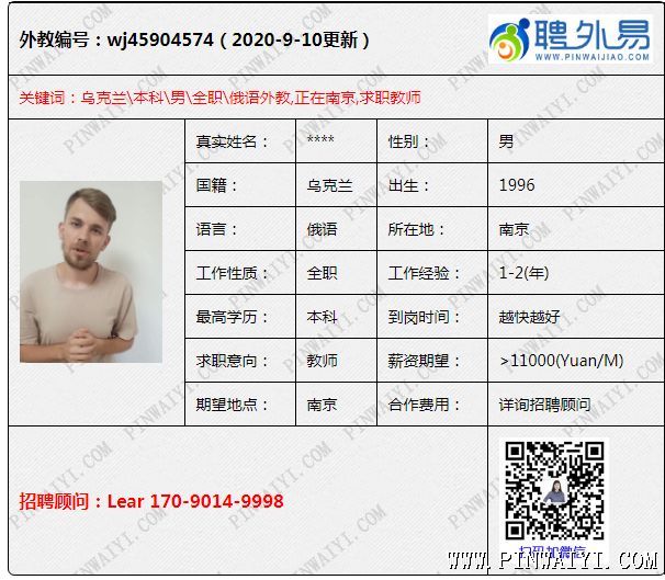 俄語外教,1-2年工作經(jīng)驗,正在南京,求職南京教師 對于外教的形象,我想我還有幾句話要說,很明顯,有的學(xué)校和課外培訓(xùn)機構(gòu), 找一個外教來學(xué)校工作,很大一部分不是找一個英語老師,其實是找一個學(xué)校的門面,甚至是找一個很好的廣告,是為了招生,招生是一個很重要的事,會給學(xué)校帶來最最直觀 的經(jīng)濟效益 。 所以這此時此刻,如果你的孩子去選擇一個好的培訓(xùn)學(xué)校,或者是課外輔導(dǎo)機構(gòu)學(xué)習(xí)和練習(xí)英語口音 ,我的建議是找一個聘請有英語母語國家的外教,這樣會讓自己的孩子更好的了解英語,不出國就可以感受來自英語母語國家的外教的上課體驗,說實話,很多時候 ,上這些外教課,真的不一定是能學(xué)到什么知識 ,只是讓自己的孩子有一個感受,感受一個全英文的課堂 ,感受一個全英文的環(huán)境,更多的是 感受一個好的學(xué)習(xí)環(huán)境,為以后有個好的學(xué)習(xí)習(xí)慣打下基礎(chǔ)。 (編輯:投稿) ———————————————————————————————————————