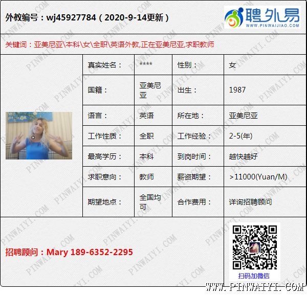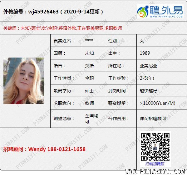 英語(yǔ)外教,碩士外教,2-5年工作經(jīng)驗(yàn) 外教很感動(dòng),并保證,如果學(xué)校給機(jī)會(huì),她一定會(huì)珍惜并且好好干,后來(lái)成功給她約到了面試,她自己也夠給力,學(xué)校決定給她offer,這是值得高興地事情,現(xiàn)在她在工作的城市努力工作著,而且隔幾天就會(huì)聯(lián)系我,我覺(jué)得這個(gè)外教還是比較有心的,沒(méi)有白給她找到工作,很欣慰,也很開(kāi)心,希望她一直努力認(rèn)真的工作。 同樣也希望外教們都能誠(chéng)實(shí)真實(shí)真誠(chéng)的找工作,也請(qǐng)學(xué)校相信我們 ,我們也會(huì)精挑細(xì)選到你們想要的外教,只因?yàn)槲覀兤竿庖资钦?guī)的專(zhuān)業(yè)的招聘公司,我們有著專(zhuān)業(yè)的招聘團(tuán)隊(duì),我們的能力超乎你的想象。 (編輯;投稿) ————————————————————————————————————————