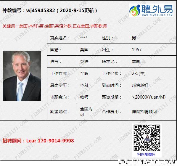 英語外教,2-5年工作經(jīng)驗(yàn),正在美國(guó),全國(guó)各地均可 1. 國(guó)外的是不是可以進(jìn)來:我們目前已經(jīng)開放航班,可能不是很多,但是進(jìn)來一定可以 ,只不過需要時(shí)間比平常長(zhǎng)一點(diǎn),目前歐洲大部分都有航班開,很多外教等待入境。這種情況下,你預(yù)定的外教一定可以進(jìn)來 。學(xué)校需要等等,除非你可以在國(guó)內(nèi)找到好的外教。 2. 外教的工作簽證問題:亞美尼亞的外教很多都免簽入境,他們都是攜帶工作簽證資料,免簽入境之后可以在中國(guó)呆3個(gè)月,在這期間,很多學(xué)校可以辦理工作簽證,如果學(xué)校不可以辦理,那么找中介也是可以辦理的。