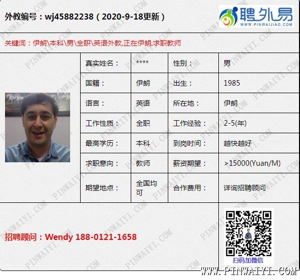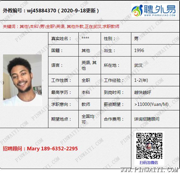 英語外教,1-2年工作經驗,正在武漢,全國各地均可 最后我想說的是,目前招聘外教的難度不僅僅在于簽證的辦理的難度,因為現在很多好的外教,也不在于時間是否合適,最最重要的還是在于,國內的外教,現在基本都確定了,很多的外教都在國外來不了,說實話,因為疫情,中國政府的果斷正確的決策,以及疫苗研究的速度之快,讓世界感到震驚,隨著中國在國際上的地位的提高,我覺得等到全球打響疫情保衛(wèi)戰(zhàn)成功之時,來中國的外國人會越來越多。所以,到那時候,想留在中國工作的外國人也會越來越多,也就是說,隨之而的,學校招聘外教的難度也不會那么大了。 (編輯:投稿) ————————————————————————————————————————