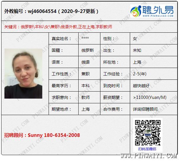 俄羅斯外教,工簽到2021.08,發(fā)音好,目前在上海,求職上海幼兒園(周一周二全天,周三到周五4點之前都可以) 首先,學(xué)校需要協(xié)助外教進行健康申報,完成14天隔離。 雖然我們國家的疫情被有效控制,但現(xiàn)在仍然是特殊時期,國外疫情還沒有被控制住,這就需要對外來華人員進行健康檢查。所以,外教來華的第一件事就是進行新冠疫情的核酸檢測,檢查結(jié)果是陰性時,方可進行健康申報。外教需要關(guān)注公眾號,進入系統(tǒng)進行申報,由于外教不清楚具體的申報流程,這就需要學(xué)校老師對其進行指導(dǎo)。完成健康申報之后,外教方可登登機。學(xué)校老師還要協(xié)助外教的隔離,為其提供基本的生活需要。