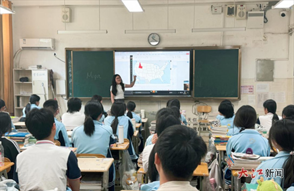 初一的課堂上,Miya老師通過簡單易懂的日常對(duì)話,豐富有趣的猜詞活動(dòng)和游戲引導(dǎo)學(xué)生開口說英語。學(xué)生們熱情高漲,紛紛踴躍參與,原本羞澀不敢開口的同學(xué)也在Miya老師的鼓勵(lì)下大膽表達(dá)。高一的課堂則更注重對(duì)中、西方文化和歷史主題的探討。Miya老師選取了一些熱門的話題,組織學(xué)生進(jìn)行辯論。學(xué)生們?cè)诩ち业乃枷肱鲎仓校粌H提高了英語表達(dá)能力,還拓寬了國際視野。 一整個(gè)星期的課程結(jié)束后,Miya老師對(duì)九江七中學(xué)生的熱情禮貌、自信大方以及良好的口語表達(dá)能力贊不絕口,“Good job”“well done”是她贊揚(yáng)和鼓勵(lì)學(xué)生們的話語。同時(shí),在于Miya老師的近距離的接觸下,九江七中學(xué)生們進(jìn)步獲得了純正的口語訓(xùn)練,更增強(qiáng)了他們學(xué)好英語的信心。 此次外教進(jìn)校園,激發(fā)了學(xué)生的英語學(xué)習(xí)熱情,提高了學(xué)生跨文化交流的能力和自信。學(xué)校將以此次活動(dòng)為契機(jī),努力打造高效英語課堂,為學(xué)生營造良好的英語學(xué)習(xí)氛圍而努力。 外教進(jìn)校園,課堂添活力——九江七中外籍教師Miya進(jìn)校園活動(dòng) |