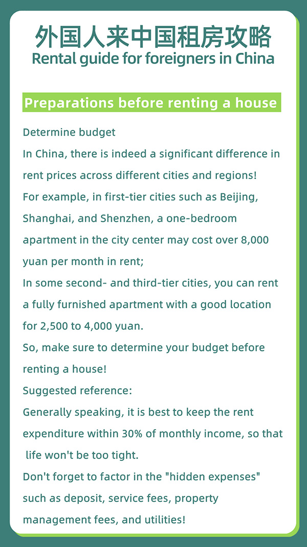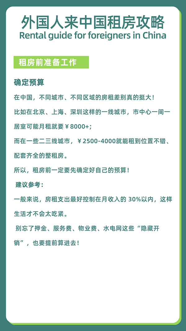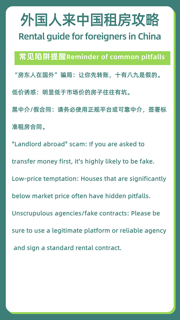 小貼士 學(xué)一點(diǎn)實(shí)用中文,比如:“看房”、“押金”、“包水電”等關(guān)鍵詞; 微信是本地溝通神器,租房聯(lián)系都靠它; 入住前拍照留證,避免退房扯皮。 Tips Learn some practical Chinese phrases, such as "看房" (house viewing), "押金" (deposit), "包水電" (electricity and water included) and other key phrases; WeChat is a local communication tool, and it is relied on for renting houses; Take photos as evidence before checking in to avoid disputes when checking out. 外國(guó)人來(lái)中國(guó)租房攻略 |