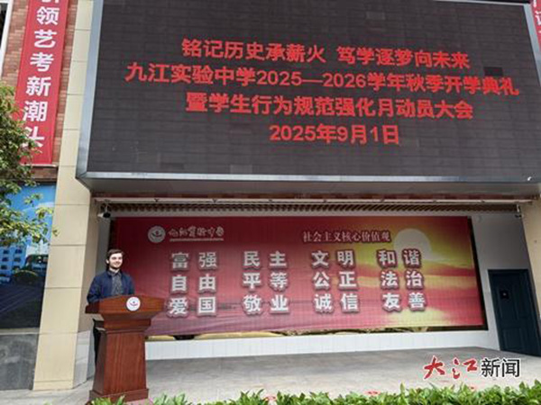 文章來源:大江網(wǎng) 九江實(shí)驗(yàn)中學(xué):外籍教師Oliver亮相開學(xué)典禮 開啟跨文化課堂新體驗(yàn) 9月1日上午,九江實(shí)驗(yàn)中學(xué)舉行新學(xué)期開學(xué)典禮。與往年不同的是,今年的典禮迎來了一位特殊嘉賓——來自英國(guó)的波蘭籍外籍教師Oliver(外籍人才)。他的到來,為校園注入了別樣的國(guó)際元素,也為師生們開啟了新學(xué)期的“跨文化第一課”。