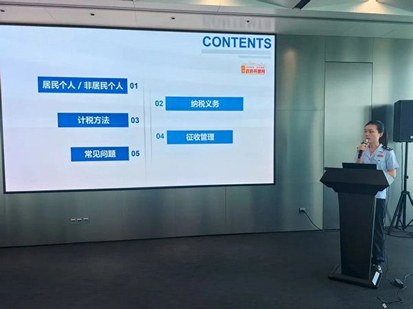 在個(gè)稅匯算清繳政策詳解部分,區(qū)稅務(wù)分局專家以外籍個(gè)人常見案例為切入點(diǎn),生動(dòng)講解了稅收政策要點(diǎn)和申報(bào)流程。