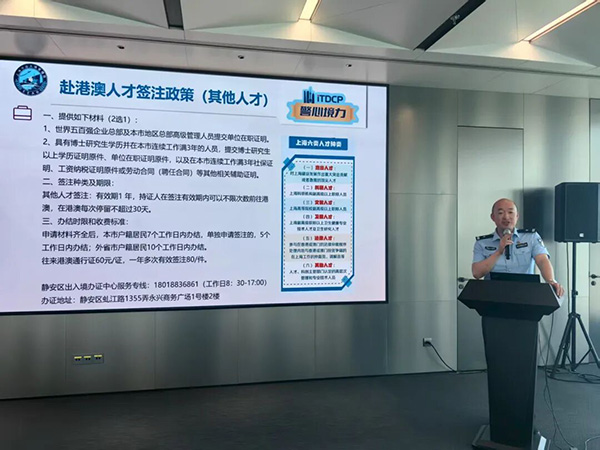 在外籍人士居留許可和永居政策解讀部分,區(qū)公安分局出入境管理支隊(duì)警官重點(diǎn)介紹了簽證便利化措施和永久居留申請條件,展現(xiàn)了靜安區(qū)出入境服務(wù)的國際化水平。