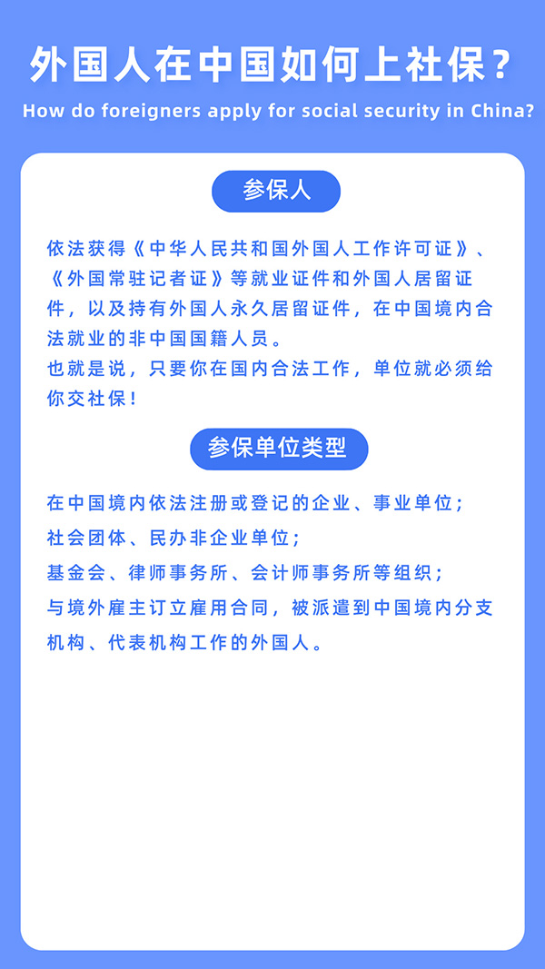 外國(guó)人在中國(guó)如何上社保?超全指南來(lái)了! 很多在中國(guó)工作的外國(guó)朋友經(jīng)常私信問(wèn)我:“在中國(guó)工作到底要不要交社保?”“社保怎么辦理?”“離職了社保怎么辦?”...今天就來(lái)給大家詳細(xì)解答一下。 Many foreign friends who work in China often send me private messages asking, "Do I need to pay social security when working in China?" "How to handle social security?" "What should I do if I resign Today, I will give you a detailed answer. 合法參保是對(duì)自己權(quán)益的保障!詳細(xì)的參保流程已整理! Legitimate participation in insurance is a guarantee of one's own rights and interests! The detailed insurance process has been organized!