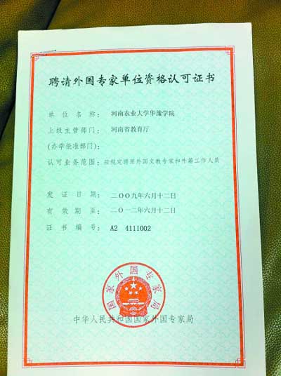 調(diào)查 1 多家無證培訓(xùn)機(jī)構(gòu),聘請無證外教 在鄭州市區(qū),幾乎每個中小學(xué)周邊都有四五家甚至更多的英語培訓(xùn)機(jī)構(gòu)。一些培訓(xùn)機(jī)構(gòu)的宣傳頁上很清楚地寫著:“聘用外教,學(xué)純正母語”。這些英語培訓(xùn)機(jī)構(gòu)是否有聘請外教的資質(zhì)?他們所謂的“外教”是否合格呢? 記者對鄭州市一些英語培訓(xùn)機(jī)構(gòu)進(jìn)行了暗訪。在鄭東新區(qū)聚源路小學(xué)門口對面,有多家英語培訓(xùn)機(jī)構(gòu)。 昨日下午3時,記者來到比爾外語培訓(xùn)中心,“你好。”在此等候的一名外國女孩用生硬的普通話和記者打招呼。 這名外國女孩說,她是印度人,目前在鄭州一所高校上大三,學(xué)的醫(yī)學(xué)專業(yè),目前正在醫(yī)院實(shí)習(xí),做外教1年了。 當(dāng)記者問她是否有外國專家證時,負(fù)責(zé)接待記者的周老師說:“你想想,她只是個學(xué)生,沒有證。” 交流時,記者說的不少簡單的日常漢語,外國女孩大都聽不懂,記者很難和她進(jìn)行英語學(xué)習(xí)方面的溝通。 隨后,記者問周老師,學(xué)校是否有聘請外教的資格證,周老師說,肯定有。當(dāng)記者說能否拿出來看一下時,她說:“我沒這個權(quán)力啊。” 在農(nóng)業(yè)東路北側(cè)的賽德智英語培訓(xùn)中心,前臺的盧老師說,她這里有兩名外教。 當(dāng)記者問她這里是否有聘請外教的資格證時,她說:“我們有辦學(xué)許可證。” 當(dāng)記者問是不是沒聘請外國專家證時,她說:“這個不需要。” 調(diào)查 2 沒資質(zhì)的印度留學(xué)生,催著記者聘用他 一家外語培訓(xùn)中心的工作人員告訴記者,雖然他們沒有外教,但可以幫記者聯(lián)系外教。她給記者留了一名外教的手機(jī)號,讓記者直接和他聯(lián)系。 這是一名外國留學(xué)生“H”(化名),前些天,記者通過手機(jī)和他說了幾句話后發(fā)現(xiàn),他的普通話并不流利,隨后,他要求通過QQ和記者聊。 加上他的QQ號后,記者發(fā)現(xiàn)他是通過一款英漢翻譯系統(tǒng)在和記者聊。 “H”說,他是一名印度人,有美國綠卡,但從小沒有生活在美國,而是生活在印度。 當(dāng)記者問他的英語口語咋樣,有沒有外國專家證時,他發(fā)來這樣一行字:“沒有人能學(xué)習(xí)醫(yī)學(xué),如果最后他/她不能流利地說英語。所以我想我不需要那個證書……學(xué)習(xí)醫(yī)學(xué)是世界的艱難歷程。”后來,“H”又多次和記者聯(lián)系,問記者何時聘用他。 調(diào)查 3 “山寨”外教的英語發(fā)音未必純正 從4月至今,在記者陸續(xù)調(diào)查的十余家英語培訓(xùn)機(jī)構(gòu)中,沒有一家培訓(xùn)機(jī)構(gòu)能當(dāng)場向記者展示他們的培訓(xùn)資格證,而記者只在一家外語培訓(xùn)機(jī)構(gòu),見到了一名外教的外國專家證。 鄭東新區(qū)一家外語培訓(xùn)機(jī)構(gòu)的女老師還告訴記者,“我們以前聘請過好幾個外教,但發(fā)音不純正,都辭退了。 在鄭東新區(qū)寶龍城市廣場內(nèi)的一家外語培訓(xùn)機(jī)構(gòu)內(nèi),一名女接待人員說:“其實(shí)有的外教口語也不咋的,他們沒有外國專家證,太山寨了,還不如找個口語好的中國英語老師教呢。” 在鄭州生活多年的一名外國朋友告訴記者:“鄭州有不少外國留學(xué)生,其中有不少來自印度、非洲,大部分不是英語母語國家,英語口語根本不標(biāo)準(zhǔn),這樣真是耽誤你們中國小朋友學(xué)英語,光我知道的,就有不少,實(shí)在看不下去了,才給你們提個醒。” 鄭州一大型外語培訓(xùn)機(jī)構(gòu)的外事辦負(fù)責(zé)人說:“一些所謂的‘外教’其實(shí)并沒有外國專家證。在一些從事英語教學(xué)的外教中,有不少是來自印度、印尼、泰國、菲律賓等非英語國家,這些老外的英語口語水平并不咋樣,并不具備英語教學(xué)經(jīng)驗(yàn)。一些來自不發(fā)達(dá)國家的留學(xué)生,如印度、尼泊爾、印尼、非洲一些國家,經(jīng)濟(jì)上并不寬裕,為了掙學(xué)費(fèi)從事外教工作。而目前在從事外教工作的,一部分是外國留學(xué)生,一部分是在中國安家的外國人,還有一部分是來華短期旅游的外國人。” 想找放心外教,要看“兩證” 河南省外國專家局專家和項(xiàng)目管理處副處長王華星告訴記者,外國人在中國從事教育工作,必須要持有“外國專家證”。而要取得“外國專家證”,至少要本科以上學(xué)歷、兩年以上相關(guān)教學(xué)工作經(jīng)歷,且有TESOL或TEFL證書。