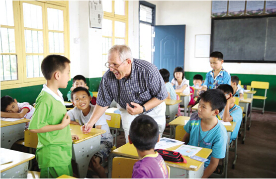 “一開始有點點怕,但他(Russ)很好玩,就不怕了。”茶葉小學的韓子曦興奮地告訴記者,課堂上Russ還摟住他的肩膀,教他和小伙伴用英語對話。而在這以前,他根本不敢。