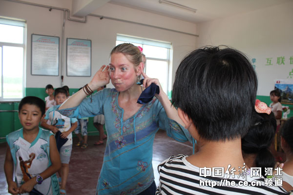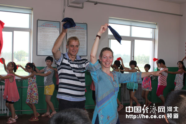 ![]() 中國經(jīng)濟(jì)網(wǎng)滄州7月22日訊(徐秀麗 通訊員王汝汀 劉鳳峰)隨著暑假序幕的拉開,大大小小的學(xué)校都在寂靜中“休眠”,而南皮縣璐灌鄉(xiāng)的羅世范小學(xué)卻熱鬧非凡。原來,幾位外國友人來到了這里,要和孩子們進(jìn)行為期兩周的交流活動。幾年來,中外交流已經(jīng)成為了羅世范小學(xué)的暑期“必修課”。走進(jìn)教室,一位“大胡子”志愿者親切的和記者打了個招呼。校長王東輝介紹,這位志愿者來自瑞士,是個外向的文藝愛好者。和“大胡子”一起來到這里的,還有其他兩位瑞士志愿者,以及兩位法國大學(xué)生志愿者。“這段時(shí)間里,我們將和大家交流中外文化,教大家英語口語、音樂、舞蹈、繪畫等。”在翻譯王芳的配合下,瑞士志愿者Sonja女士向孩子們介紹了暑期的交流內(nèi)容。隨后,孩子們和志愿者一起唱起了英文字母歌。