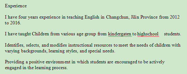 外教的工作經(jīng)歷