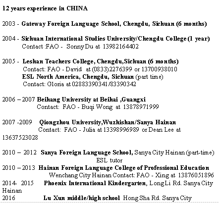 加拿大外教 在三亞 家屬簽 求職海南 盡快到崗 |