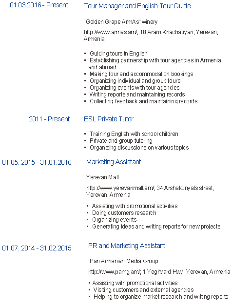 有工作經(jīng)驗, 現(xiàn)在在亞美尼亞, 來自亞美尼亞, 希望學校能給辦理工作簽證 |