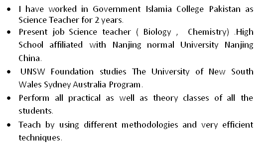 巴基斯坦男 化學 生物外教 現(xiàn)在南京 工簽 有經(jīng)驗 盡快到崗 |