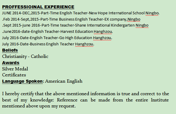 國(guó)籍: 美國(guó) 求職意向: 教師