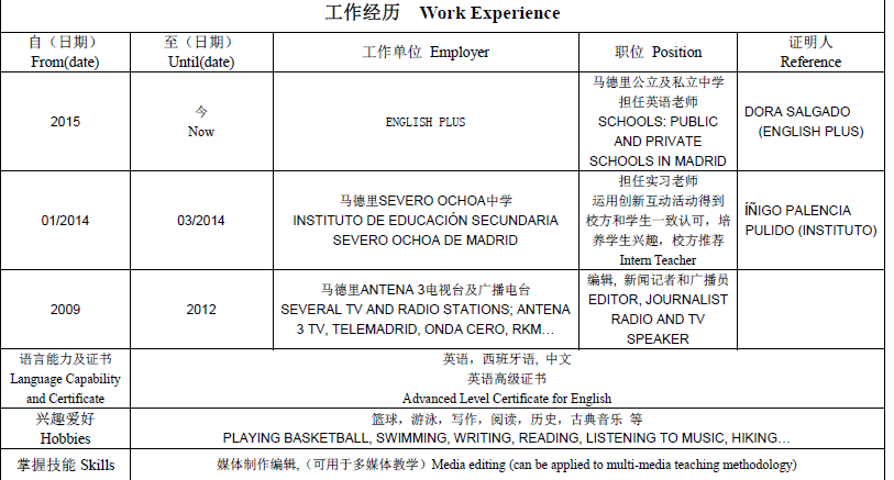 國(guó)籍: 其他 求職意向: 教師