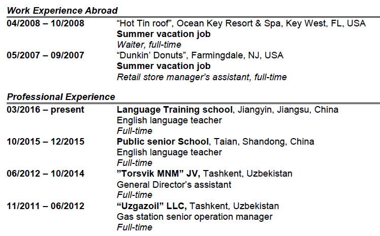 外教的工作經(jīng)歷