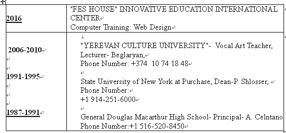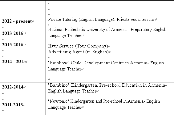 有經(jīng)驗, 可以教戲劇, 唱歌, 曾經(jīng)是歌劇演員 |