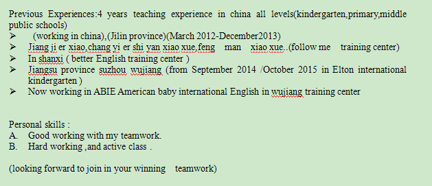 國籍: 美國 求職意向: 教師