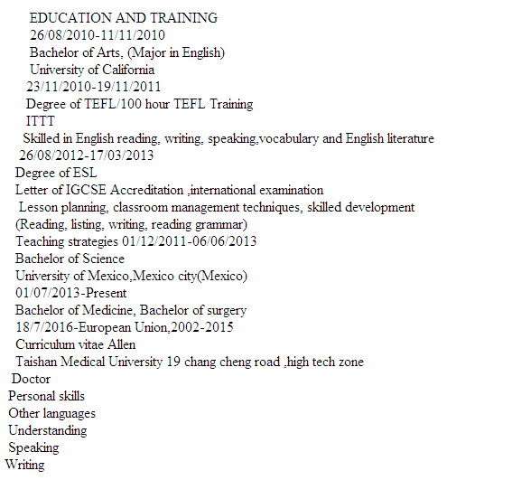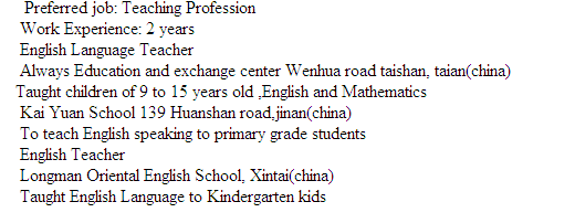 國(guó)籍: 其他 求職意向: 教師