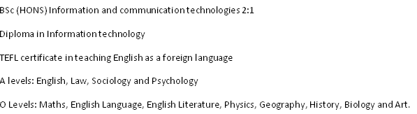 國籍: 尼日利亞 求職意向: 教師