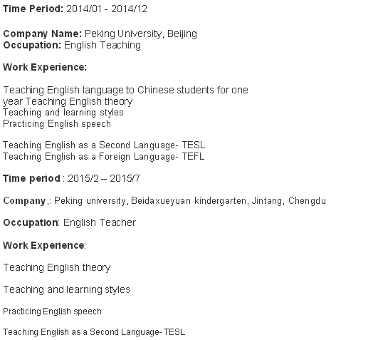 面試詳情:『全國均可』的用人單位可約該外教面試,目前還沒有用人單位約該外教面試。