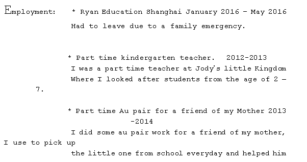 國(guó)籍: 津巴布韋 求職意向: 教師
