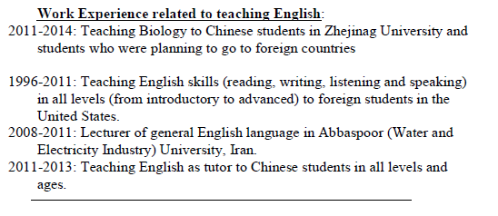 國籍: 其他 求職意向: 教師