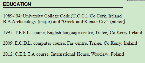 國籍: 愛爾蘭 求職意向: 教師