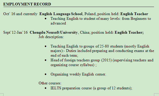 國籍: 俄羅斯 求職意向: 教師