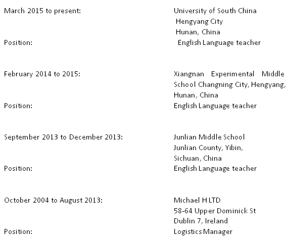 愛爾蘭外教 在衡陽工簽 求職下學期 |