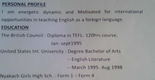 國籍: 未知 求職意向: 教師