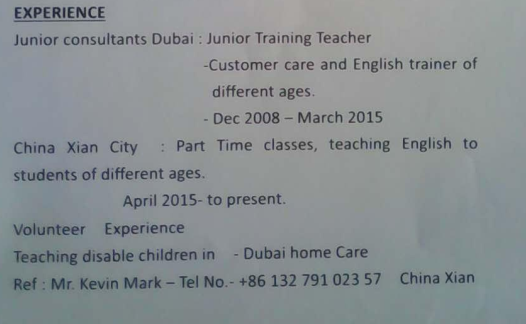 國籍: 巴基斯坦 求職意向: 教師