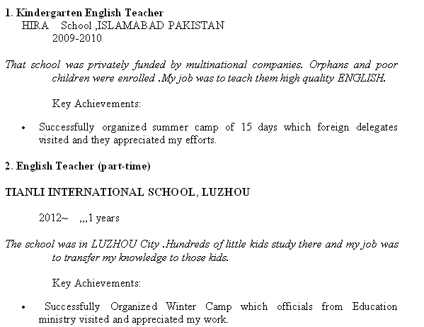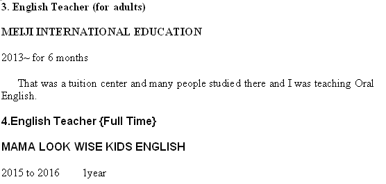 外教的工作經(jīng)歷