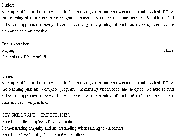 國(guó)籍: 俄羅斯 求職意向: 教師