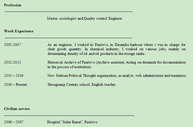 國籍: 俄羅斯 求職意向: 教師