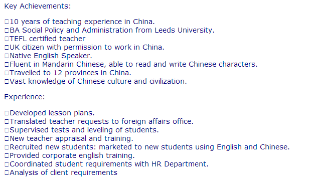 國籍: 澳大利亞 求職意向: 教師
