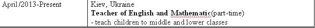 國(guó)籍: 烏克蘭       求職意向: 教師