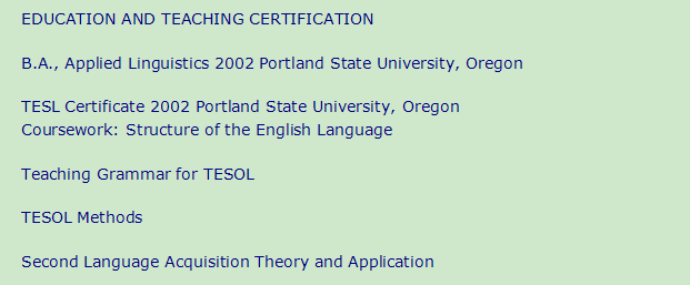國(guó)籍: 美國(guó) 求職意向: 教師