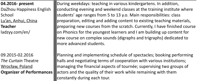 波蘭女現(xiàn)在六安碩士TEFL有高中經(jīng)驗 工簽 合同到明年3月份 求職下學期高中或成人職位 |