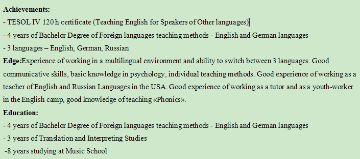 國(guó)籍: 美國(guó) 求職意向: 教師