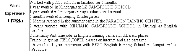 國(guó)籍: 美國(guó) 求職意向: 教師